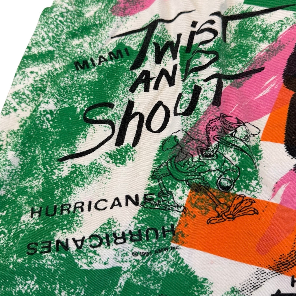 Size: Fits like a Med/Lrg- 22” x 26”Brand: No TagColor: MultiCondition: No holes, rips or stains Date: 1991Material: 100% Cotton