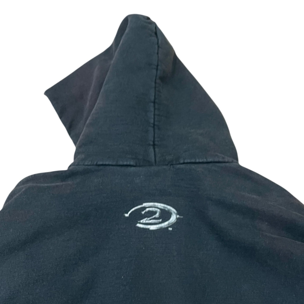 Size: XL- 26” x 26"Condition: Faded throughout with sun fade areas, one of hoodie strings has damage and a small repair on left sleeve cuff. SOLD AS ISColor: BlackBrand: XBOX Date: 2004Material: Cotton